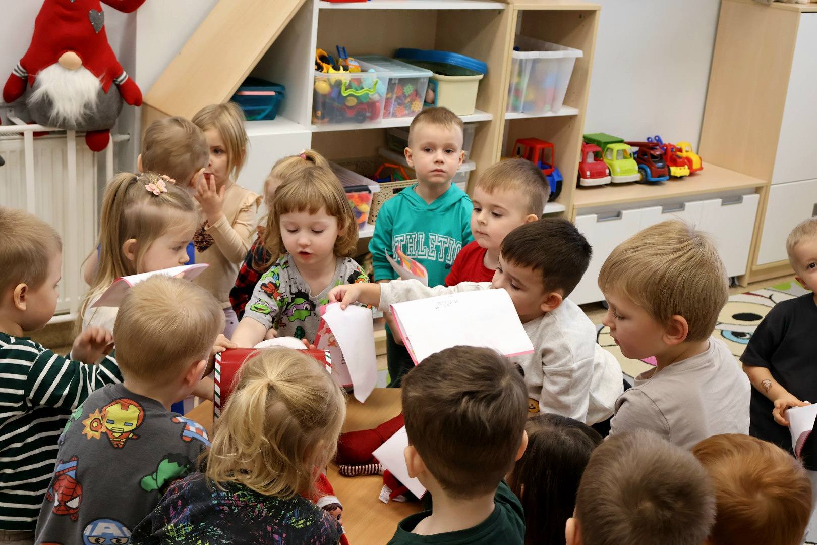 Szkrabusie z ogromnym entuzjazmem zabrały się do pisania listów do św. Mikołaja. Każdy list był wyjątkowy – pełen dziecięcych marzeń i rysunków. Nie zabrakło skupienia, kreatywności i radości z samego tworzenia. Listy są już gotowe i czekają na swojego adresata, a my z niecierpliwością odliczamy dni do wizyty św. Mikołaja 🎅🎁