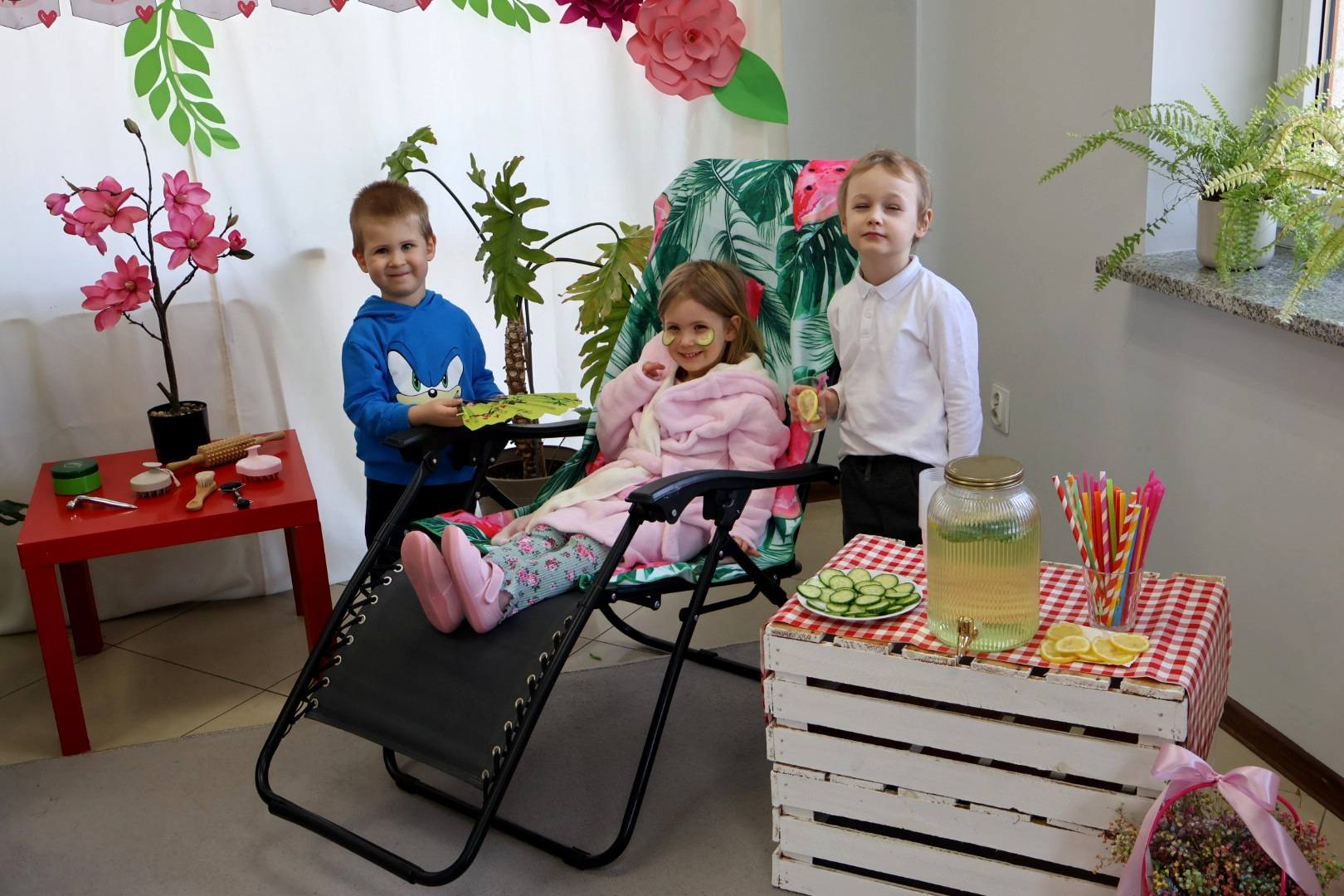 Dzięki wspaniałej postawie kolegów z grupy, dziewczynki zostały obdarowane ogromną dawką uśmiechu, życzliwości i pięknych gestów. Nie zabrakło chwil relaksu w przedszkolnym SPA 🍃, orzeźwiającej lemoniady 🍋, a także kwiatów 💐 i drobnych upominków 🎁